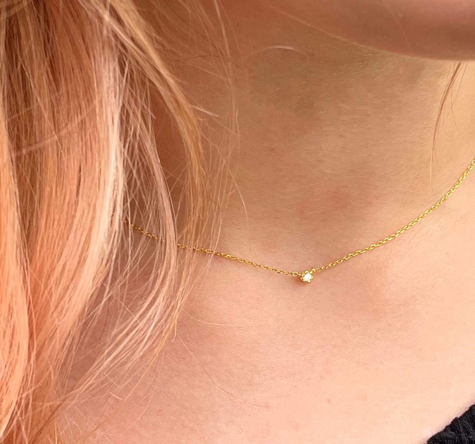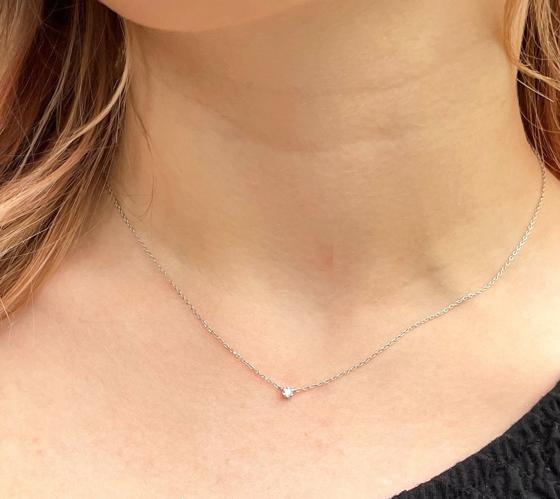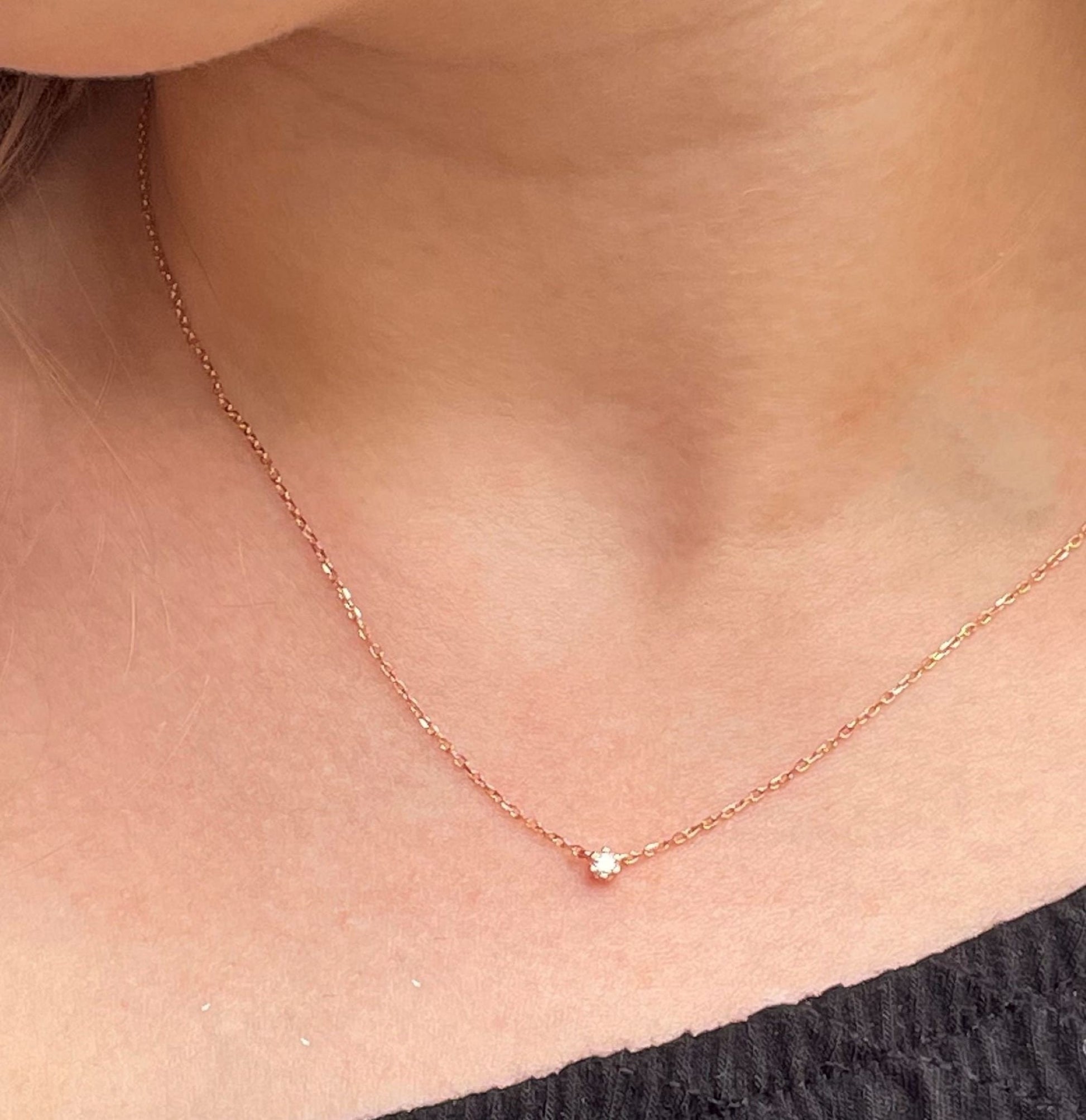 Dainty Tiny Sterling Silver CZ Cubic Zirconia Solitaire Pendant Layering Rose Gold, Gold, Silver Choker Necklace, Gift for Women, Girl Gifts