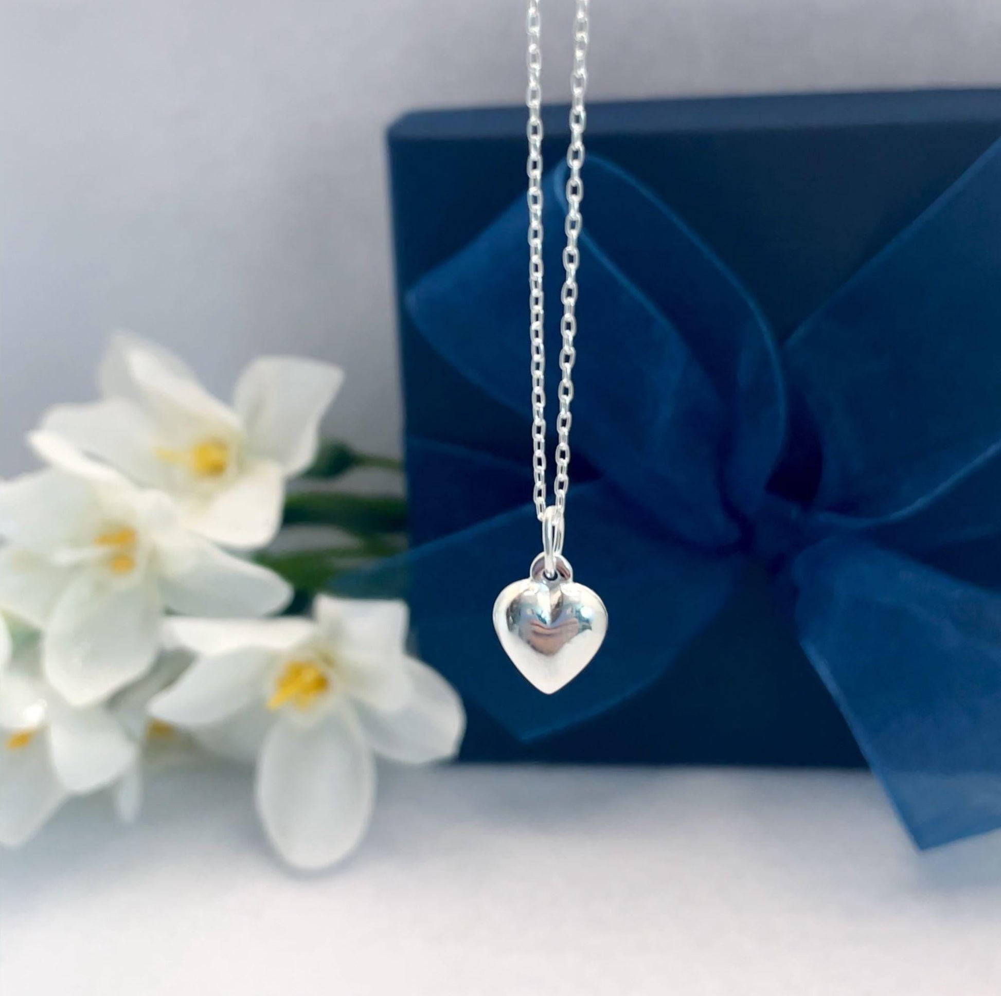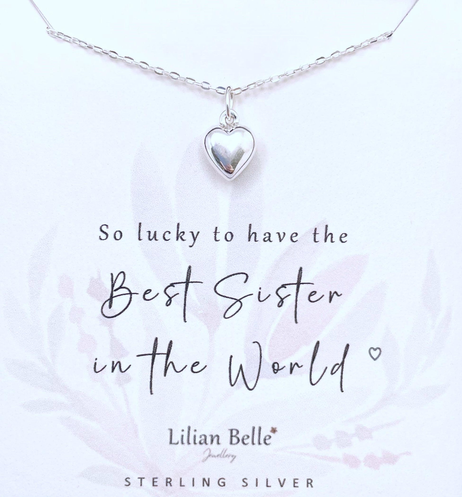 A beautiful, meaningful sterling silver necklace with a little puffed sterling silver heart set against on a meaningful card celebrating the recipient!